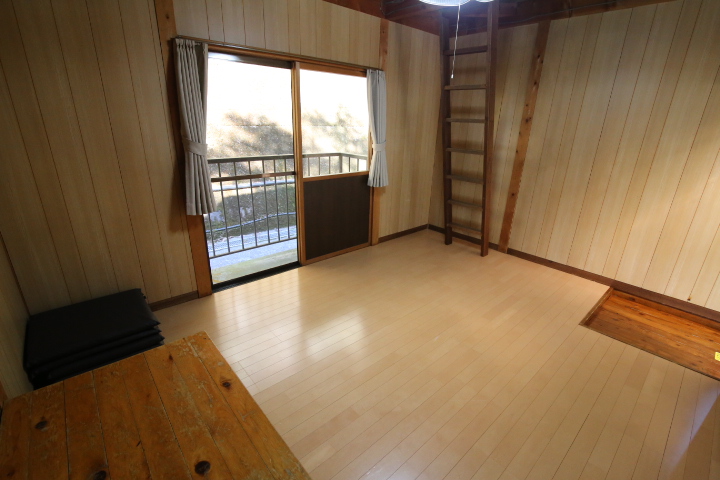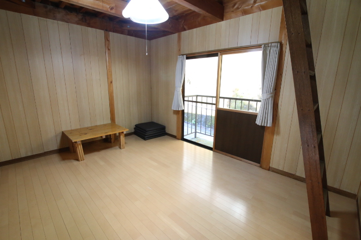 場内受付横の山側高台に建つバンガロー。 こちらは定員6名様。