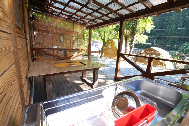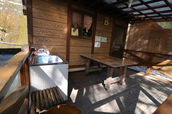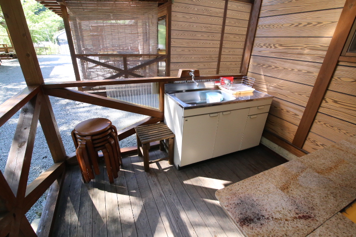 各テラスに流し台完備。 トイレは共同のものをご利用ください。