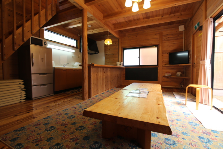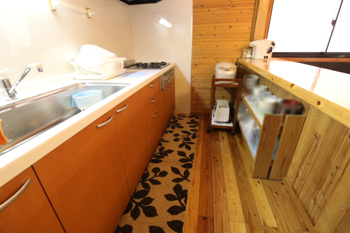 大き目のシステムキッチンを初め炊飯器・大型冷蔵庫・調理器具・テレビ等完備しておりますので食材と着替え類程度の荷物で気軽にお越し頂けます。
