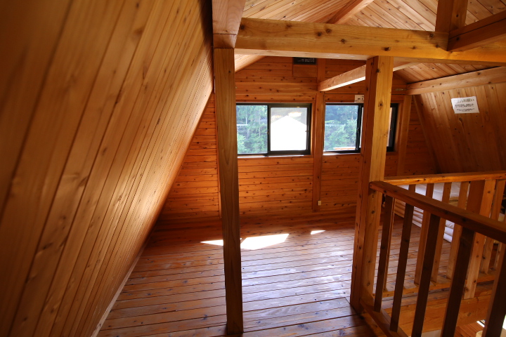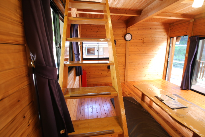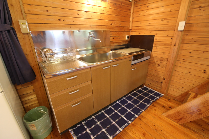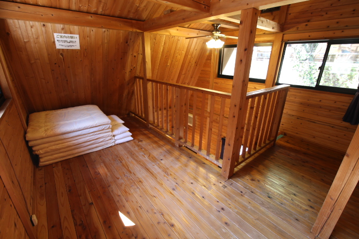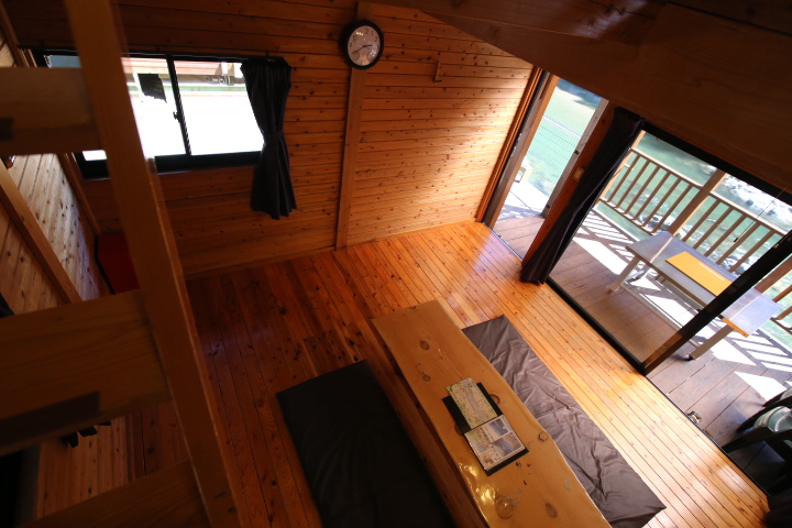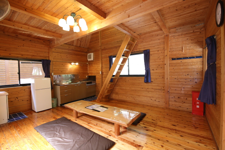 お洒落な造りのコテージで一番小さいサイズです。 広さは1階部分で10畳くらいです。 家族連れ、カップルでの利用に丁度良い広さです。 清潔な室内には流し台・洗面所・冷蔵庫が完備されており、室内での調理ができます。 アウトドアが初めての方でも気軽にご利用して頂ける空間です。